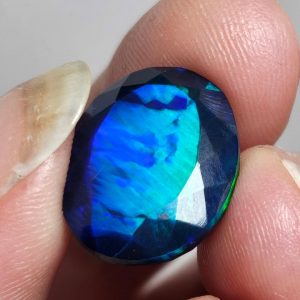 • Opale facettée noir naturelle fumée smocked Ethiopie