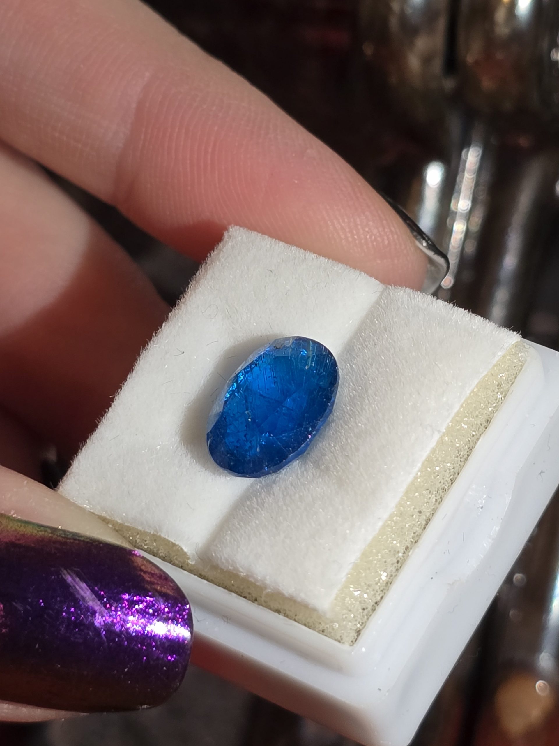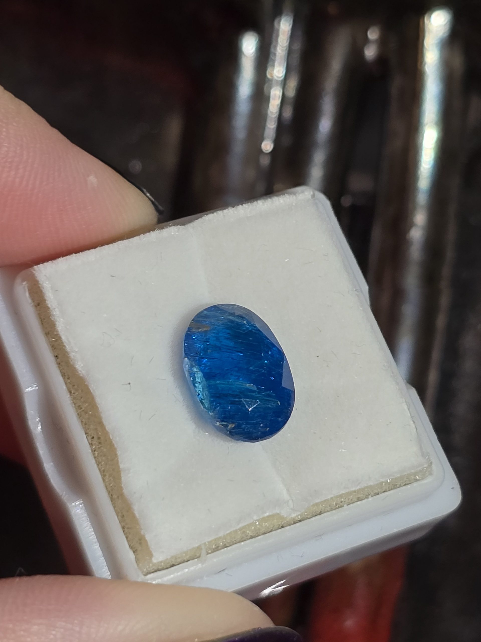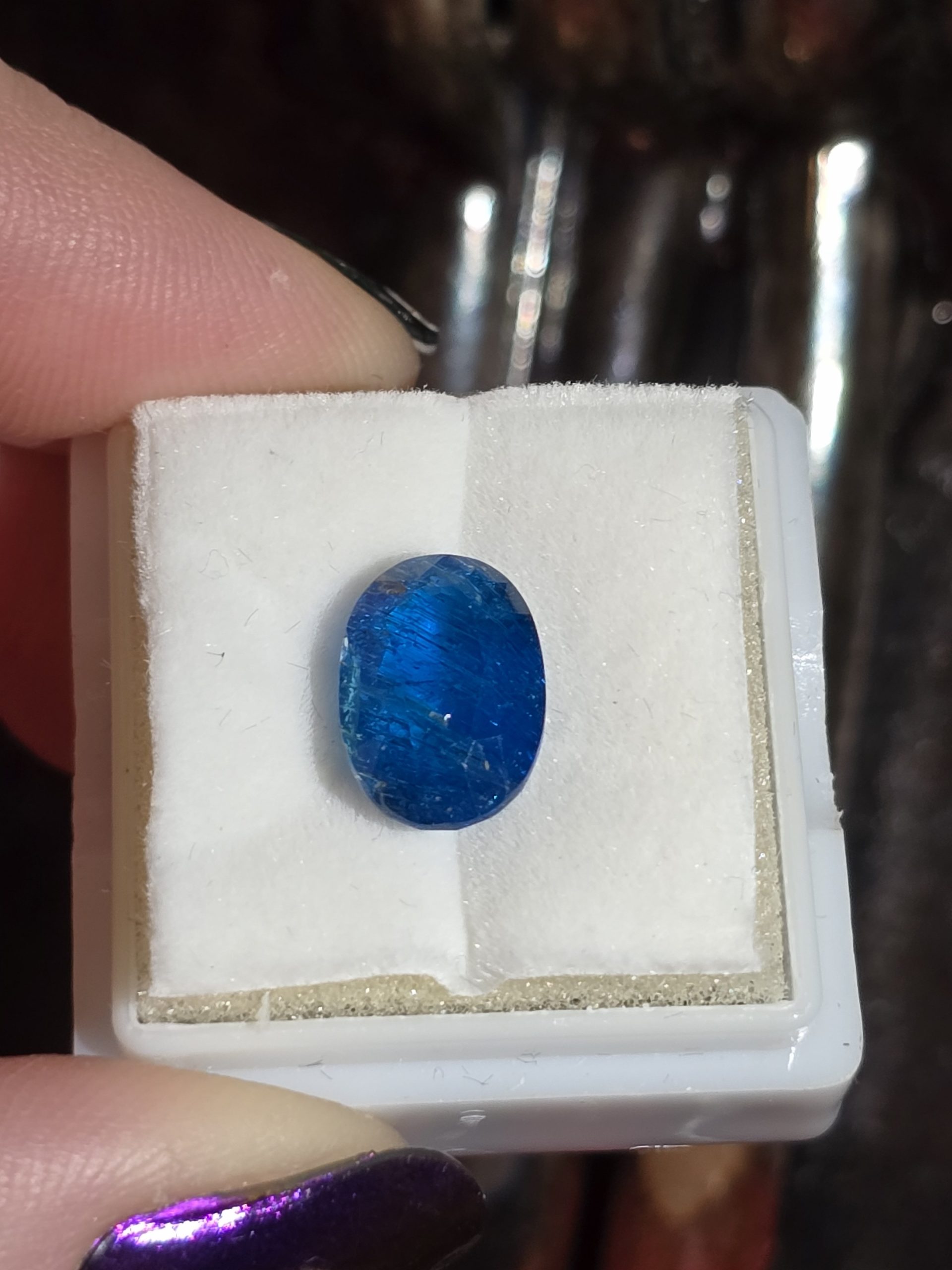 Bonjour je vous propose une belle apatite naturelle, taille ovale facettée, bleu profond caractéristique. Pierre présentant des inclusions internes typiques de l’espèce, offrant un éclat vif et une belle transparence. Idéale pour une création sur mesure.