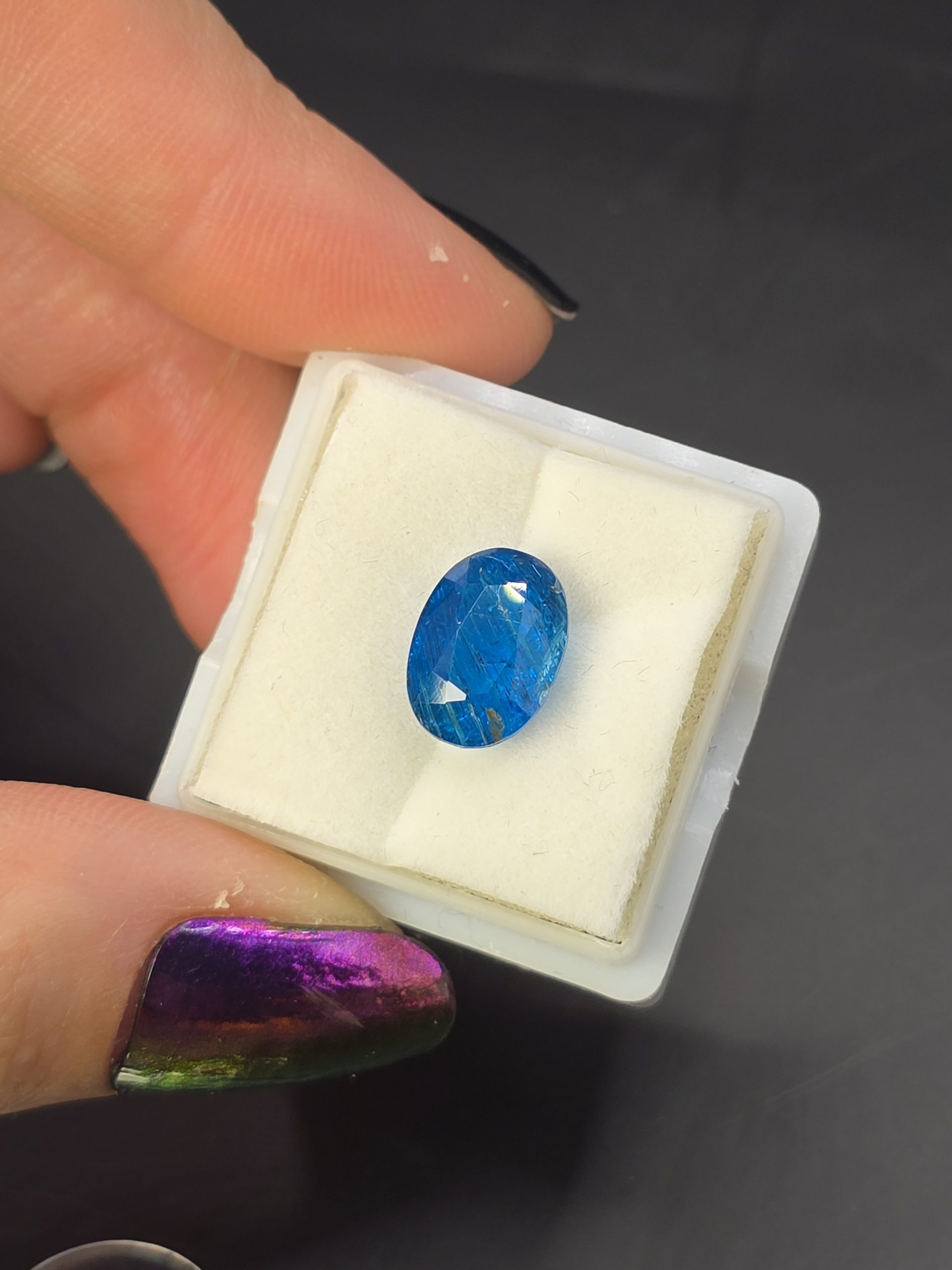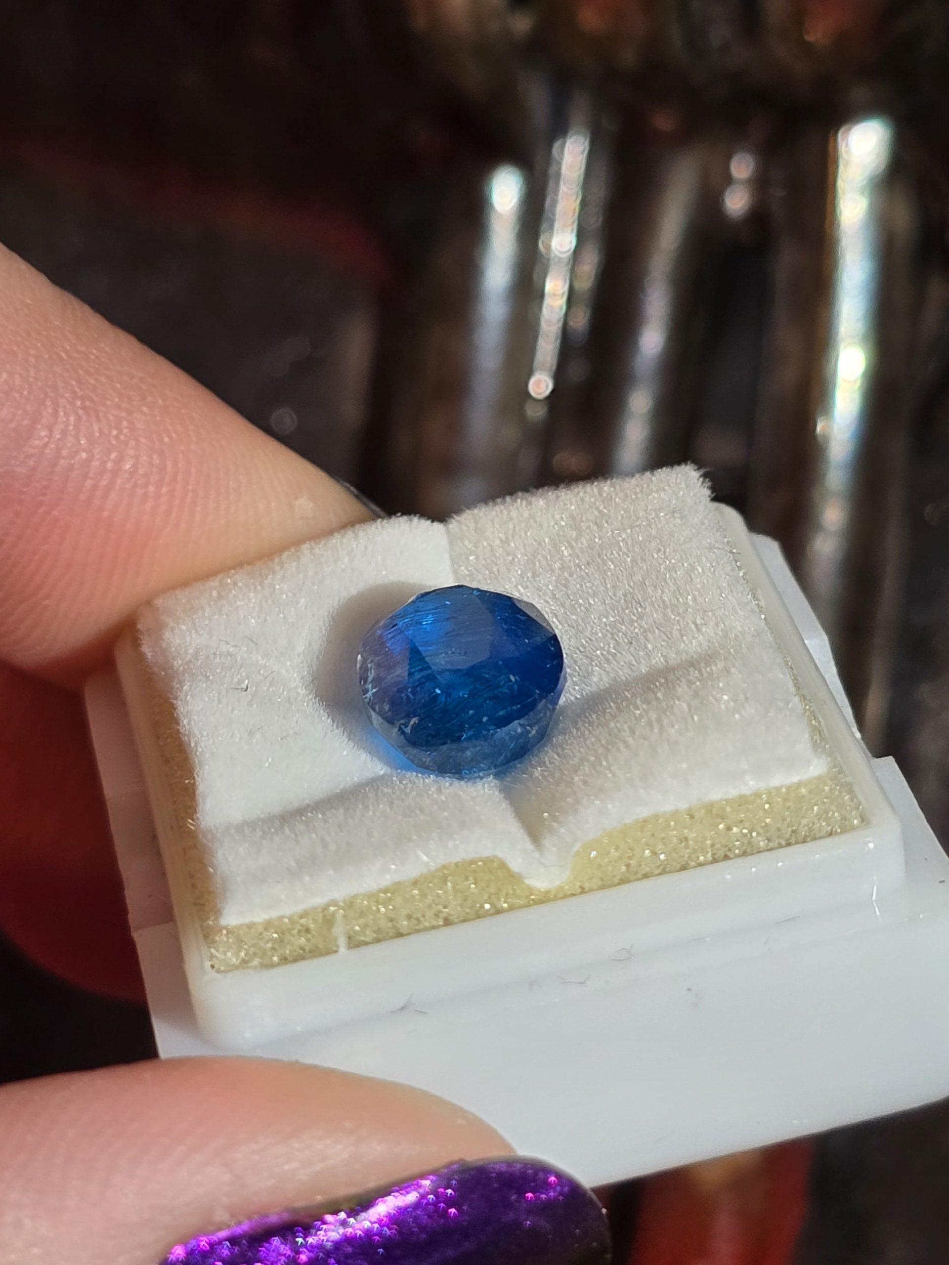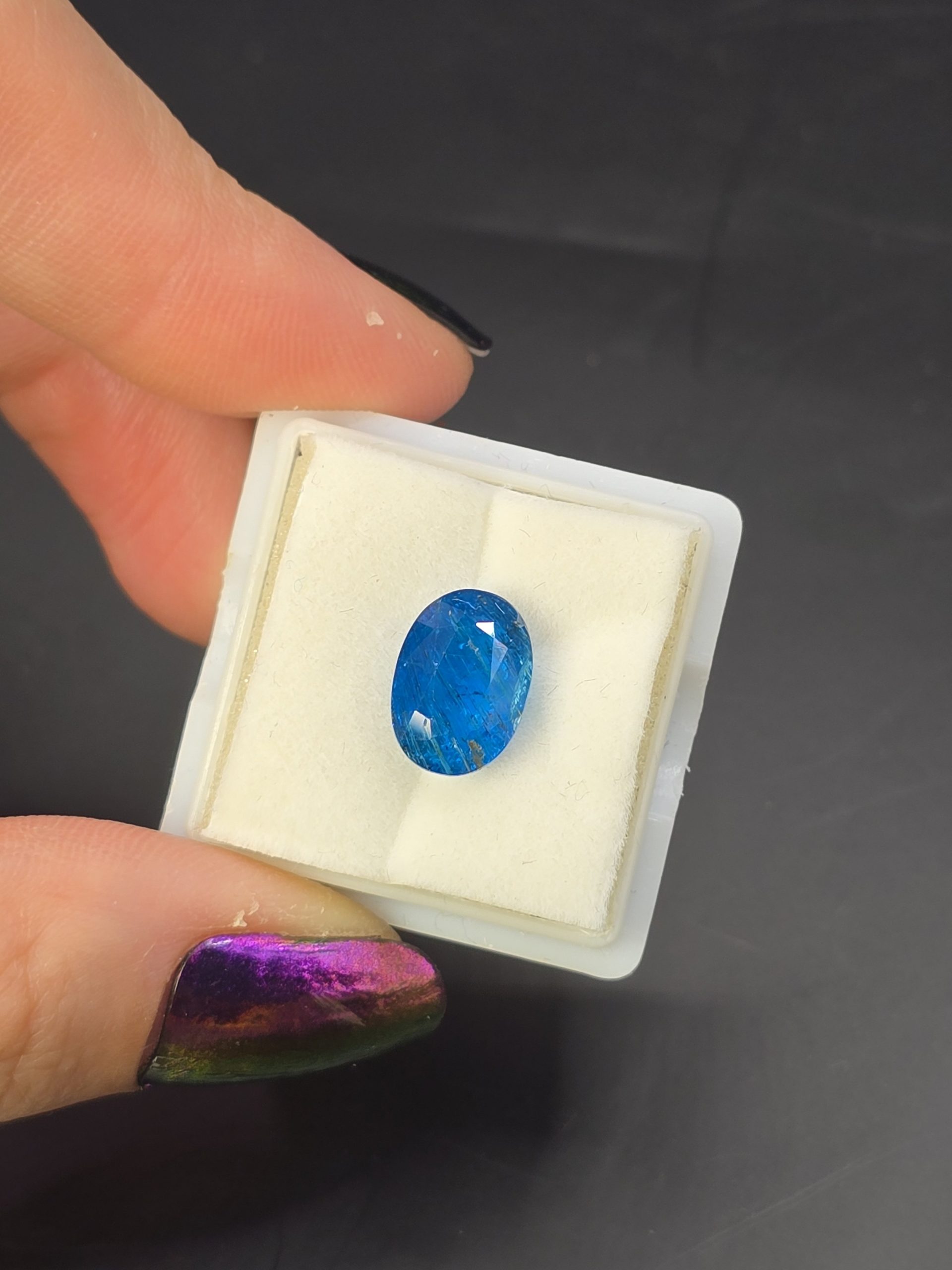 Bonjour je vous propose une belle apatite naturelle, taille ovale facettée, bleu profond caractéristique. Pierre présentant des inclusions internes typiques de l’espèce, offrant un éclat vif et une belle transparence. Idéale pour une création sur mesure.