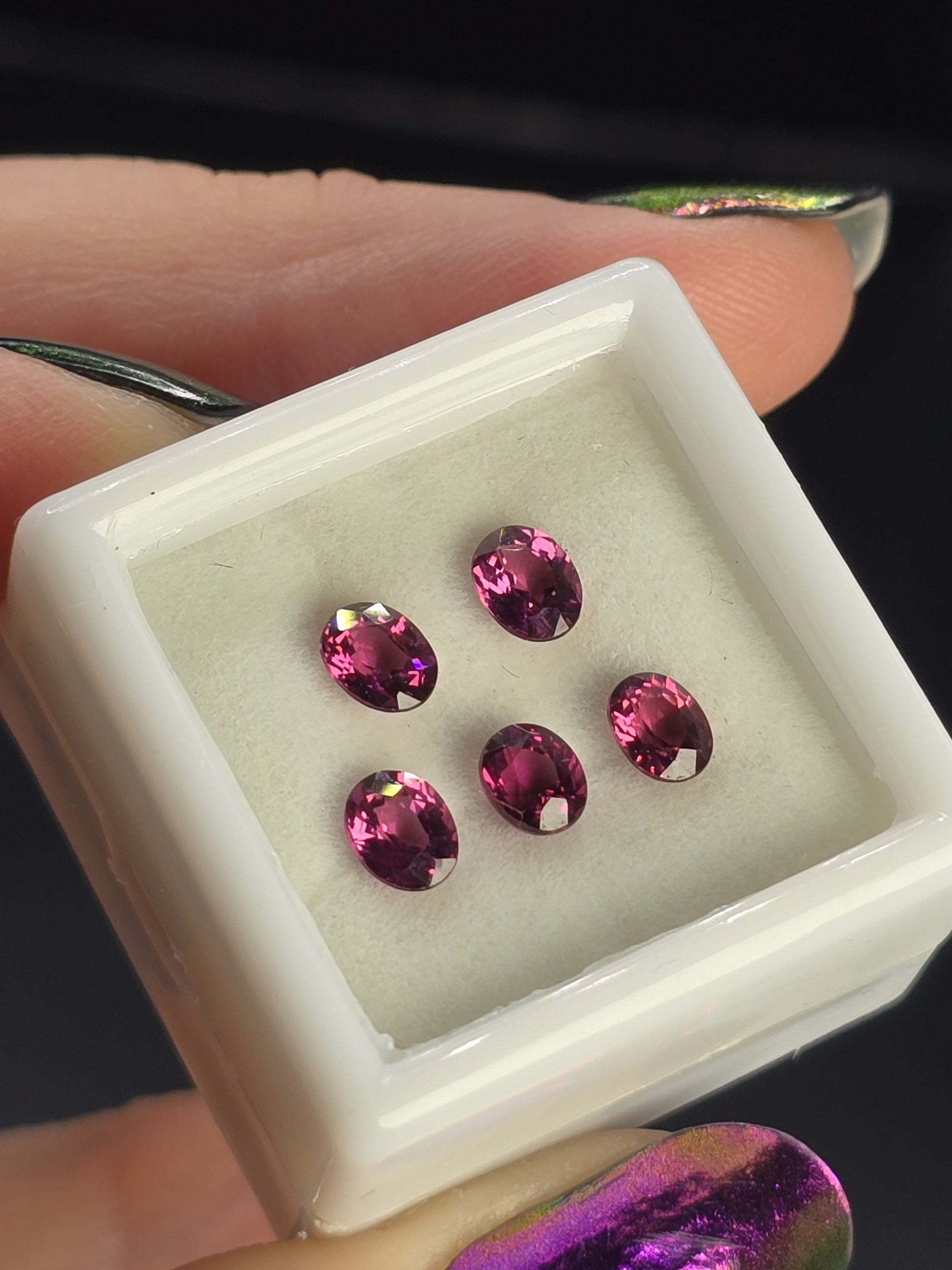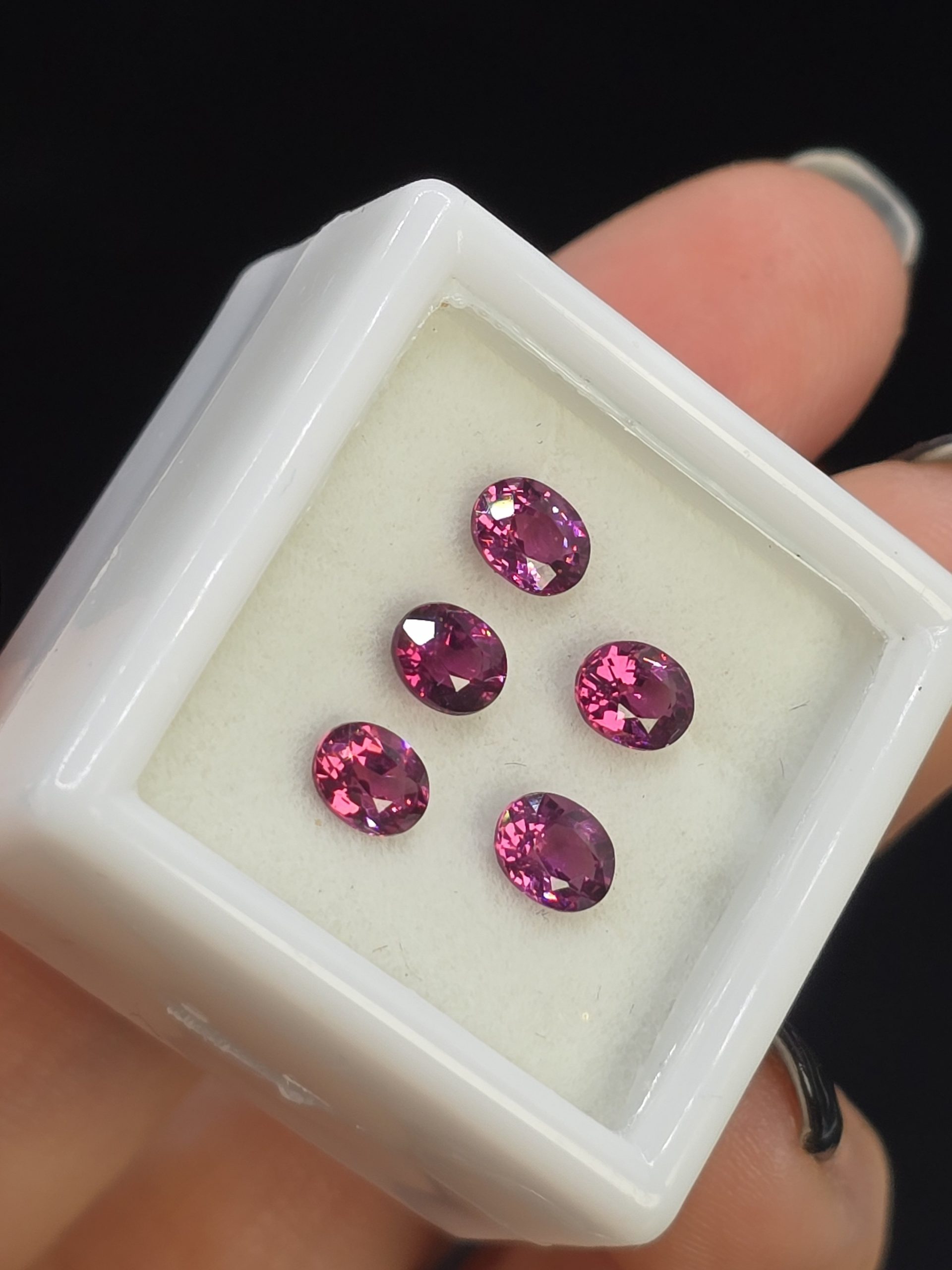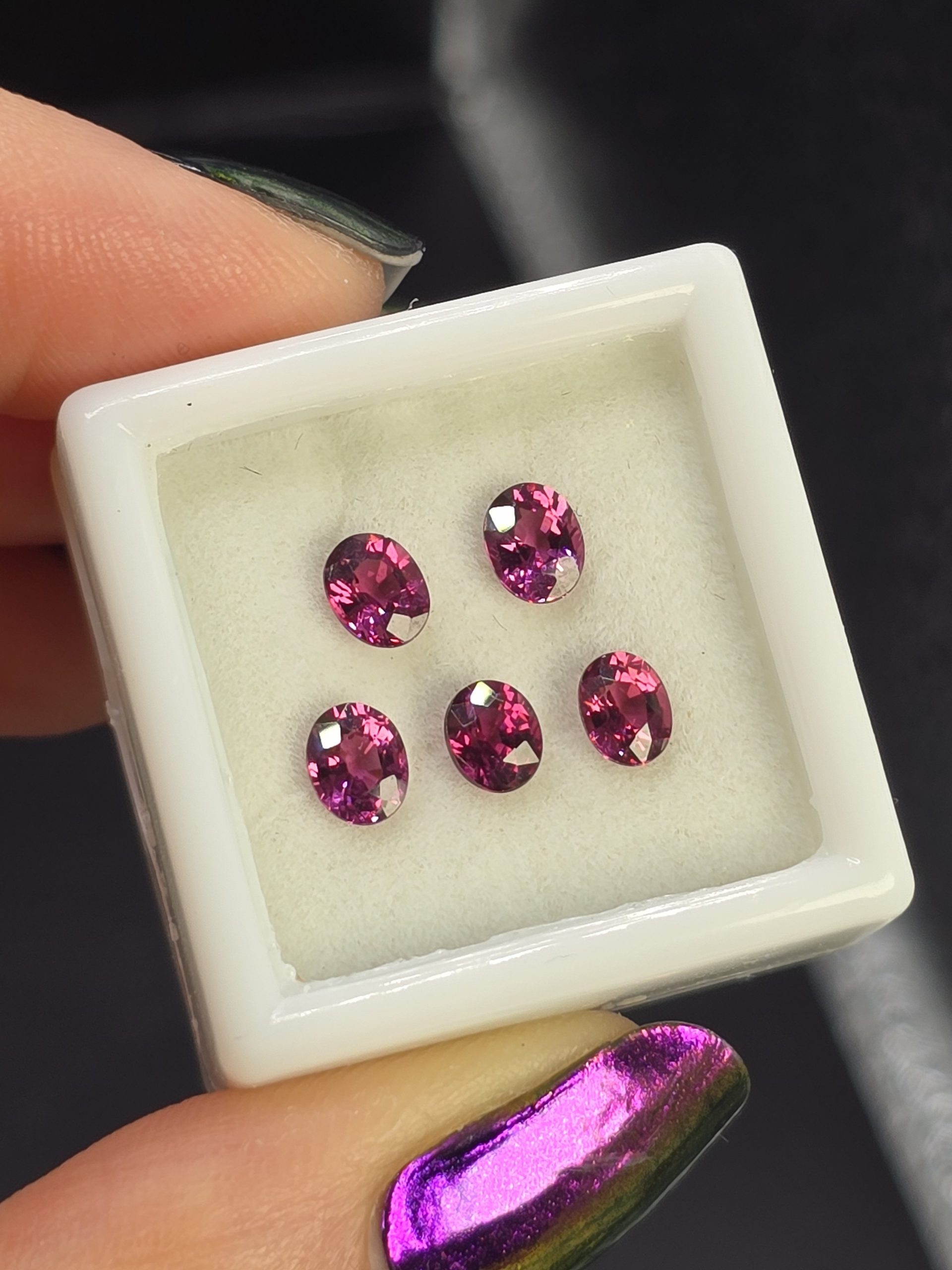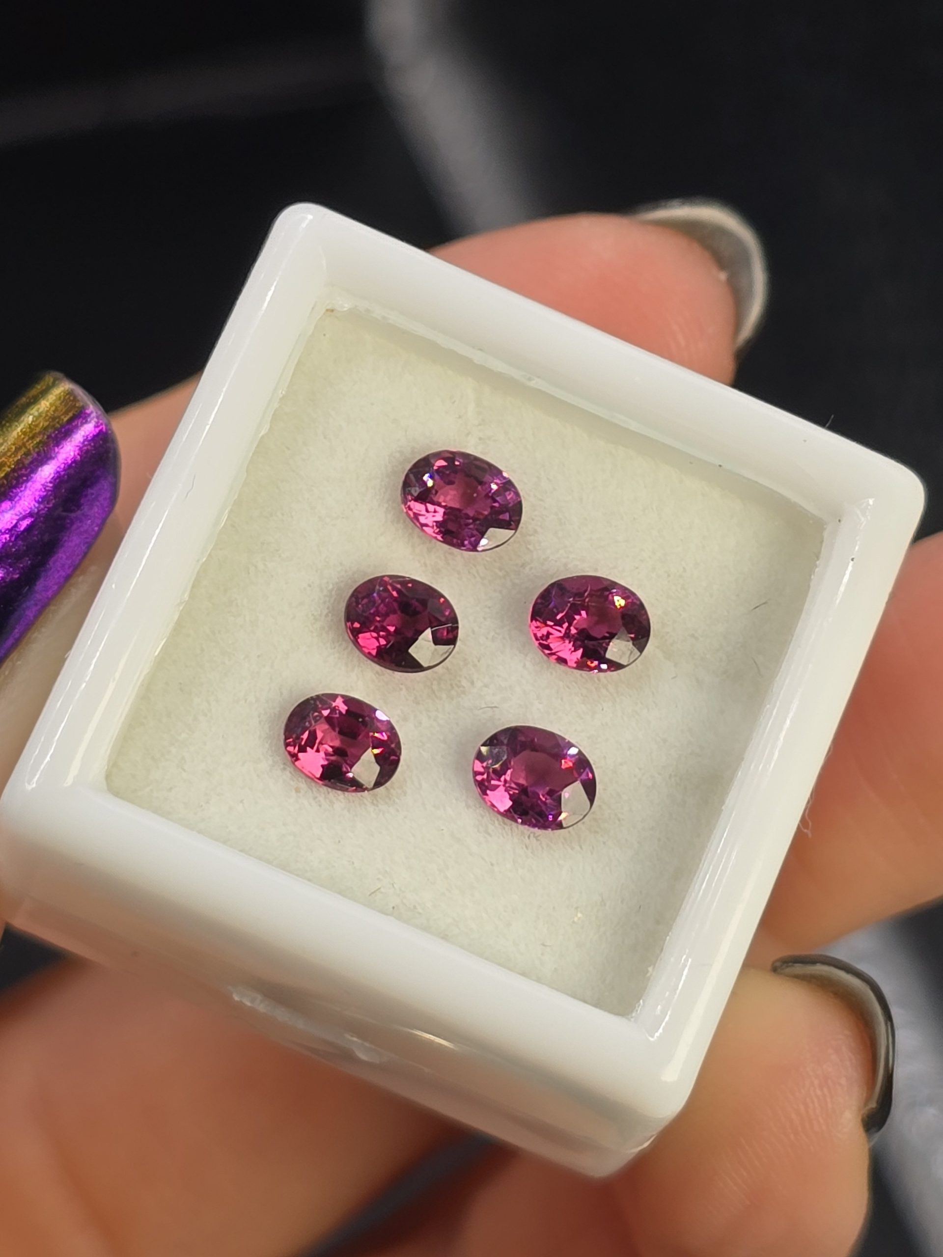 Bonjour je vous propose un magnifique lot de grenats éclatants aux nuances framboise intenses. Leur brillance et leur couleur vive apportent une touche de raffinement et d’énergie à toute création joaillière. Variété rhodolite (pyrope-almandin), teinte typique allant du rose soutenu au pourpre. Transparence très bonne, avec une saturation de couleur homogène. Idéal pour des bagues lumineuses, des boucles d’oreilles élégantes ou encore des pendentifs au charme intemporel.