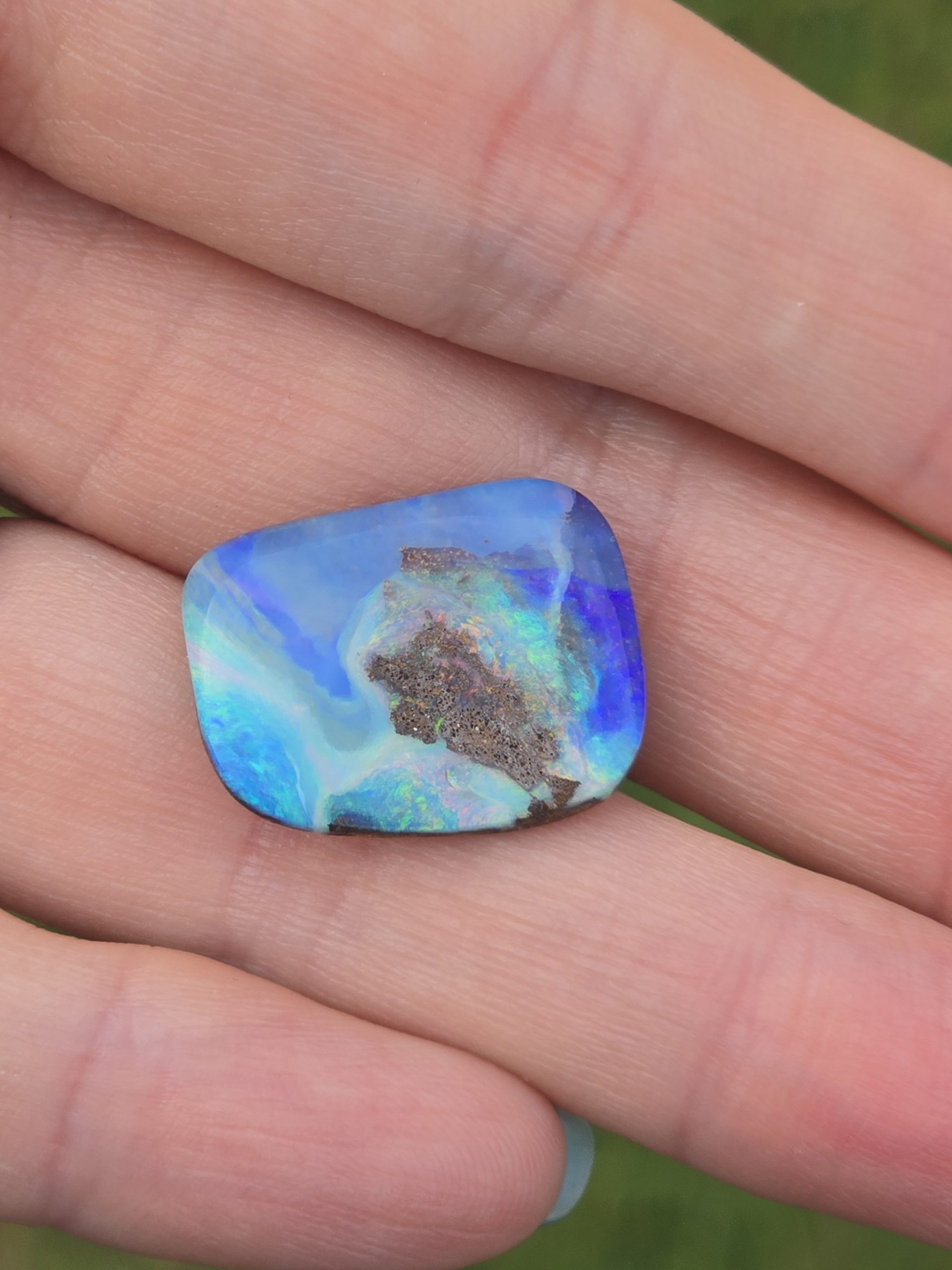 Bonjour je vous propose une magnifique opale boulder d’Australie absolument captivante, où les teintes bleues et vertes dansent autour d’une matrice naturelle, créant un spectacle de couleurs digne d’une petite œuvre d’art naturelle. Sans entrer dans les détails techniques, cette pierre raconte à elle seule une histoire unique, parfaite pour sublimer une création de bijouterie artisanale et lui donner une âme véritablement unique.
