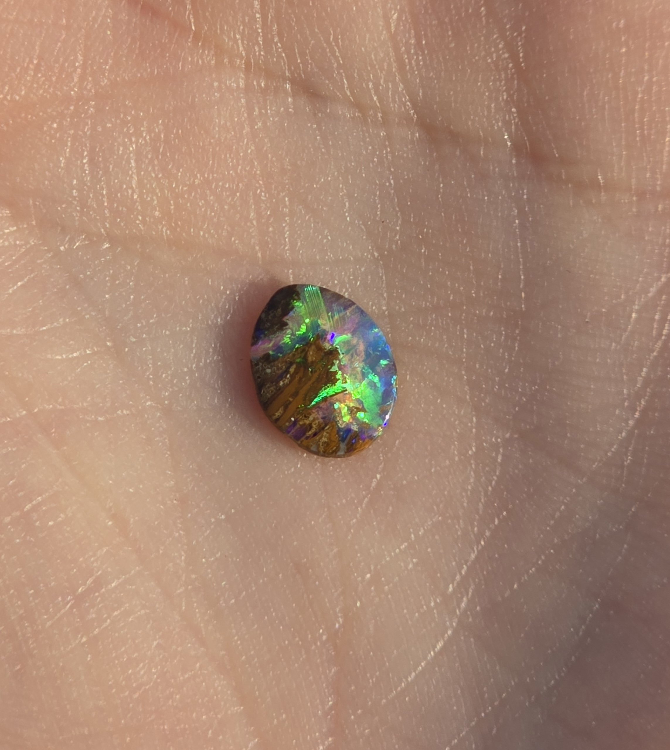 Parfaite pour une création de bijou unique ou une pièce de collection, cette opale raconte l’histoire silencieuse du temps, sublimée par la lumière.