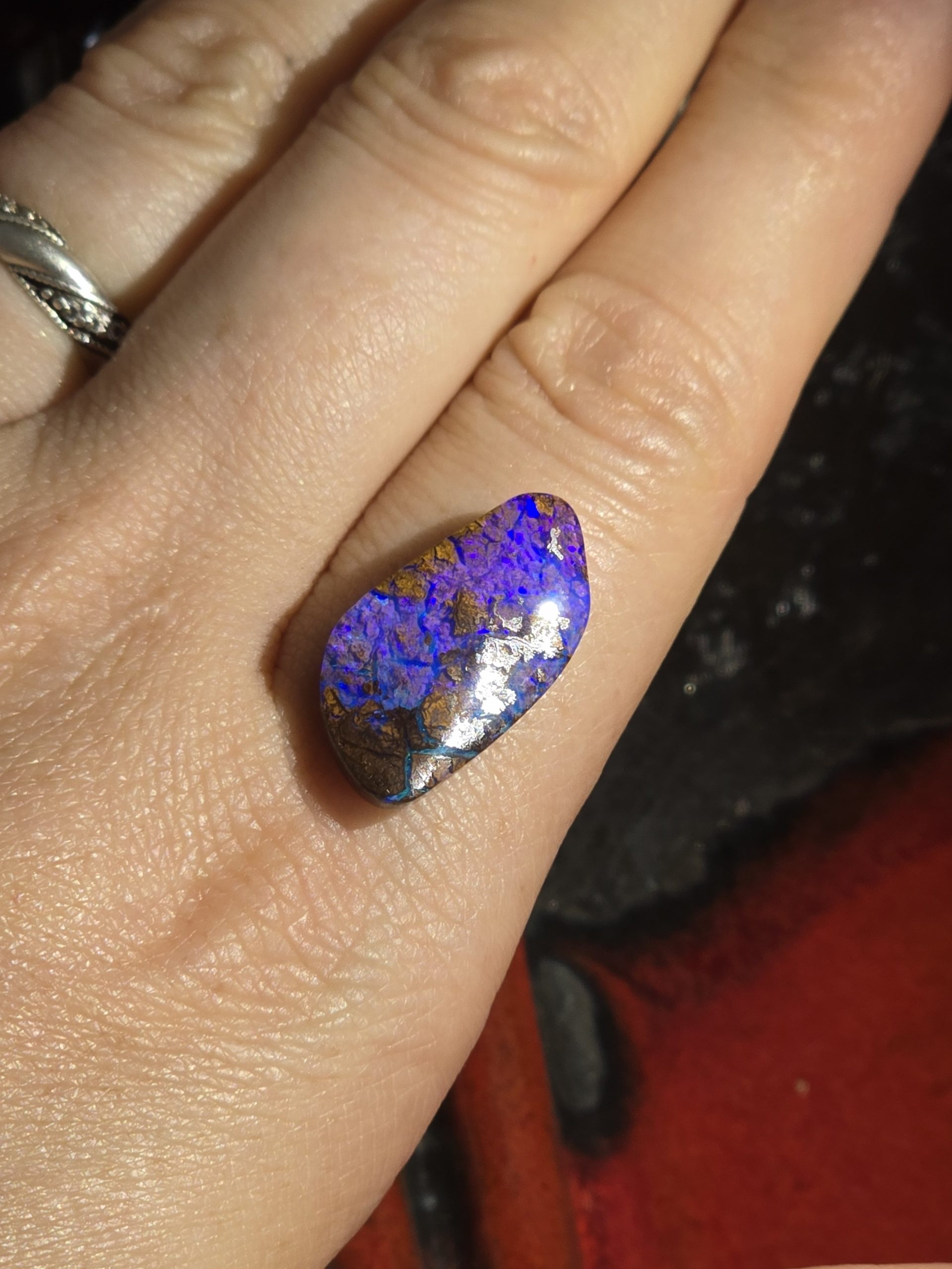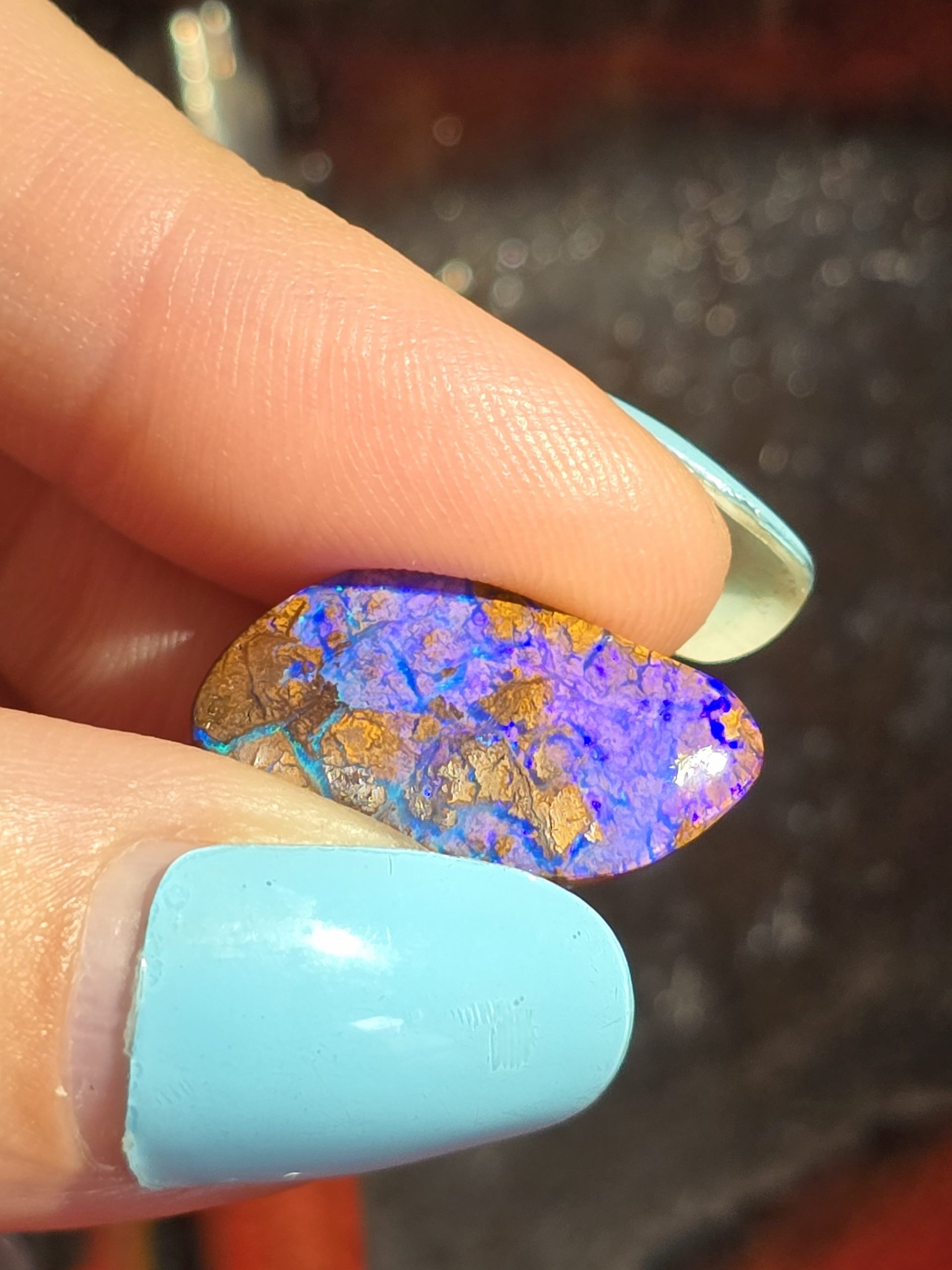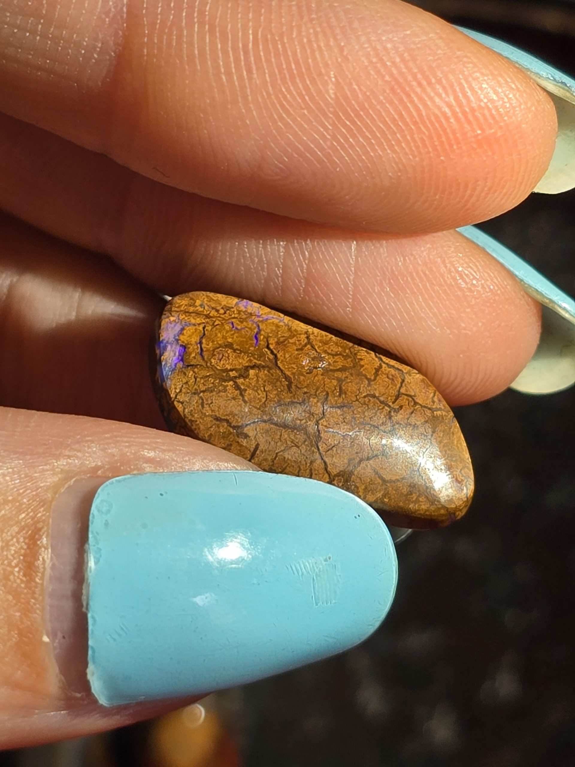 Bonjour je vous propose une merveille de la nature, une pièce charismatique aux éclats violets et bleu électrique, relevés de touches turquoise et orangées sur une matrice chocolat.